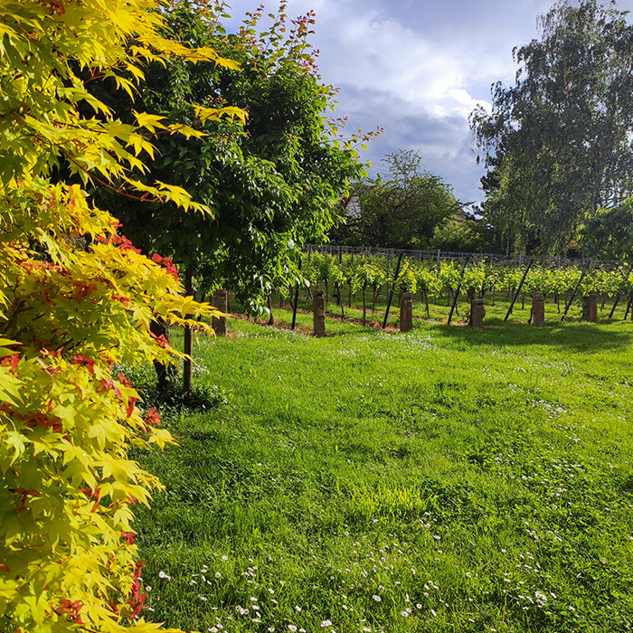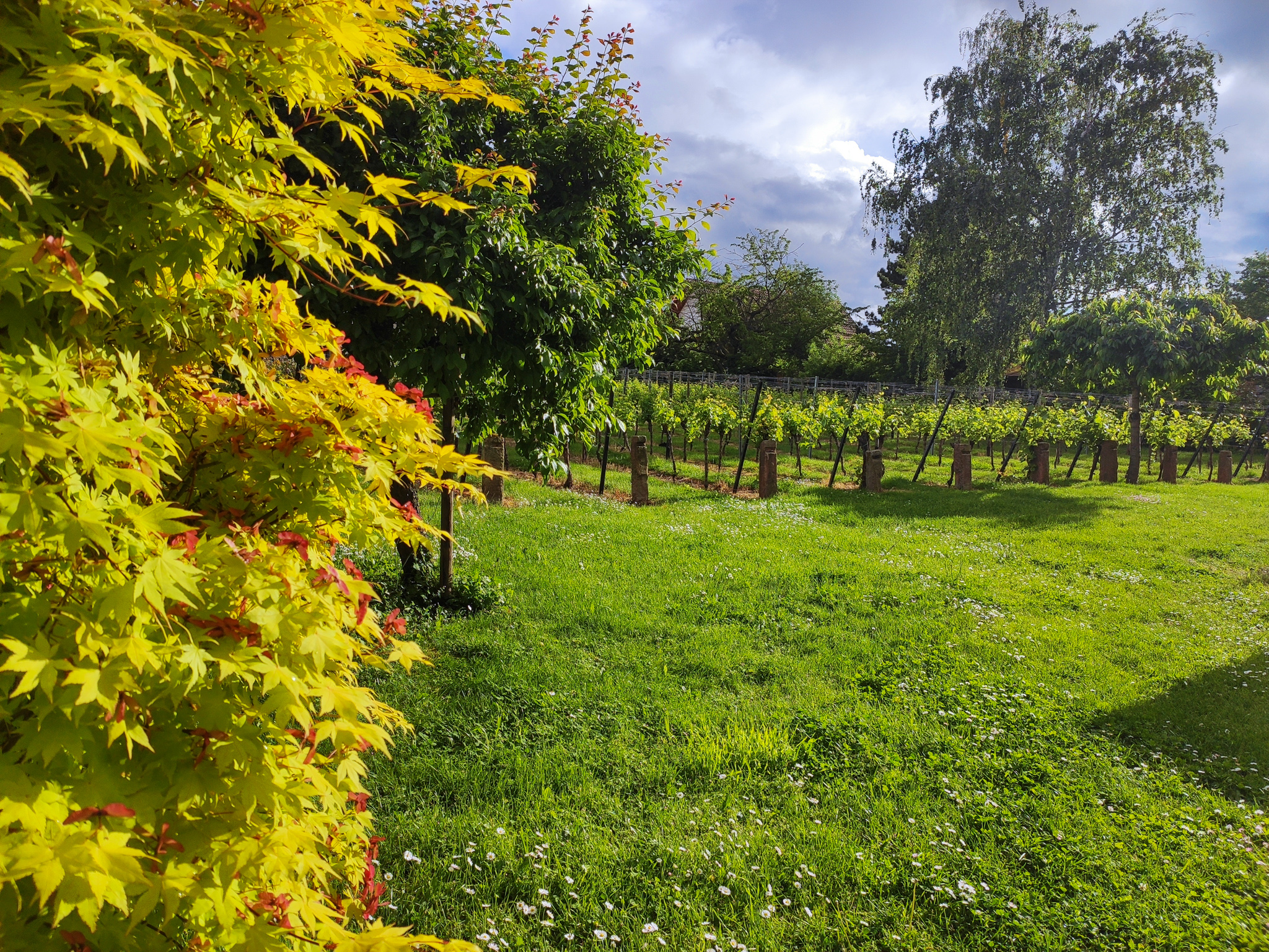 Genussmomente, wie den großen Garten mit eigenem Weinberg, die Weinlounge, eine Dachterrasse mit Südblick, eine große, komplett ausgestattete Einbauküche, ein Esszimmer und ein Wohnzimmer tragen zu Ihrem Wohlbefinden bei.